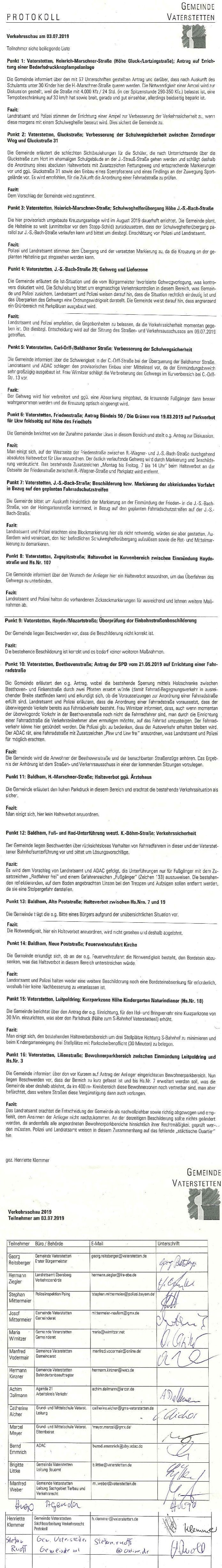 "am Mittwoch war ja die Verkehrsschau, insgesamt habe ich die als ganz produktiv empfunden. Es hat zwar die Verwaltung ( Hr. Weber ) ihre Punkte deutlich vorgebracht aber jeder konnte seine Meinung anbringen und es wurden auch Vorschläge daraufhin geändert. Die Vertreter von Polizei und Landratsamt haben meist zugestimmt.
