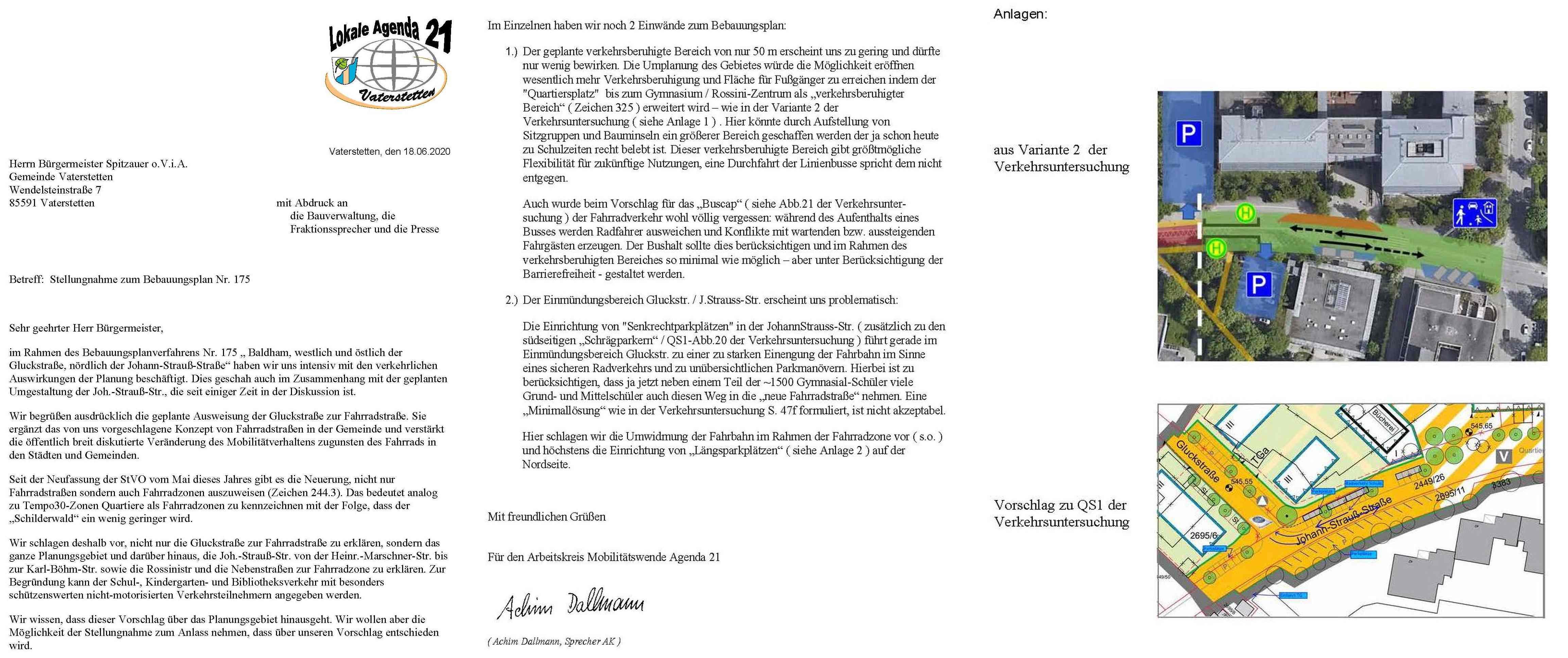 Bis zum 19.06.2020 war der Bebauungsplanentwurf Nr.175 „ Baldham, westlich und östlich der Gluckstraße, nördlich der Johann-Strauß-Straße“ öffentlich zur Stellungnahme ausgelegt. Der Arbeitskreis hat sich intensiv damit beschäftigt und dazu wie folgt Stellung genommen: