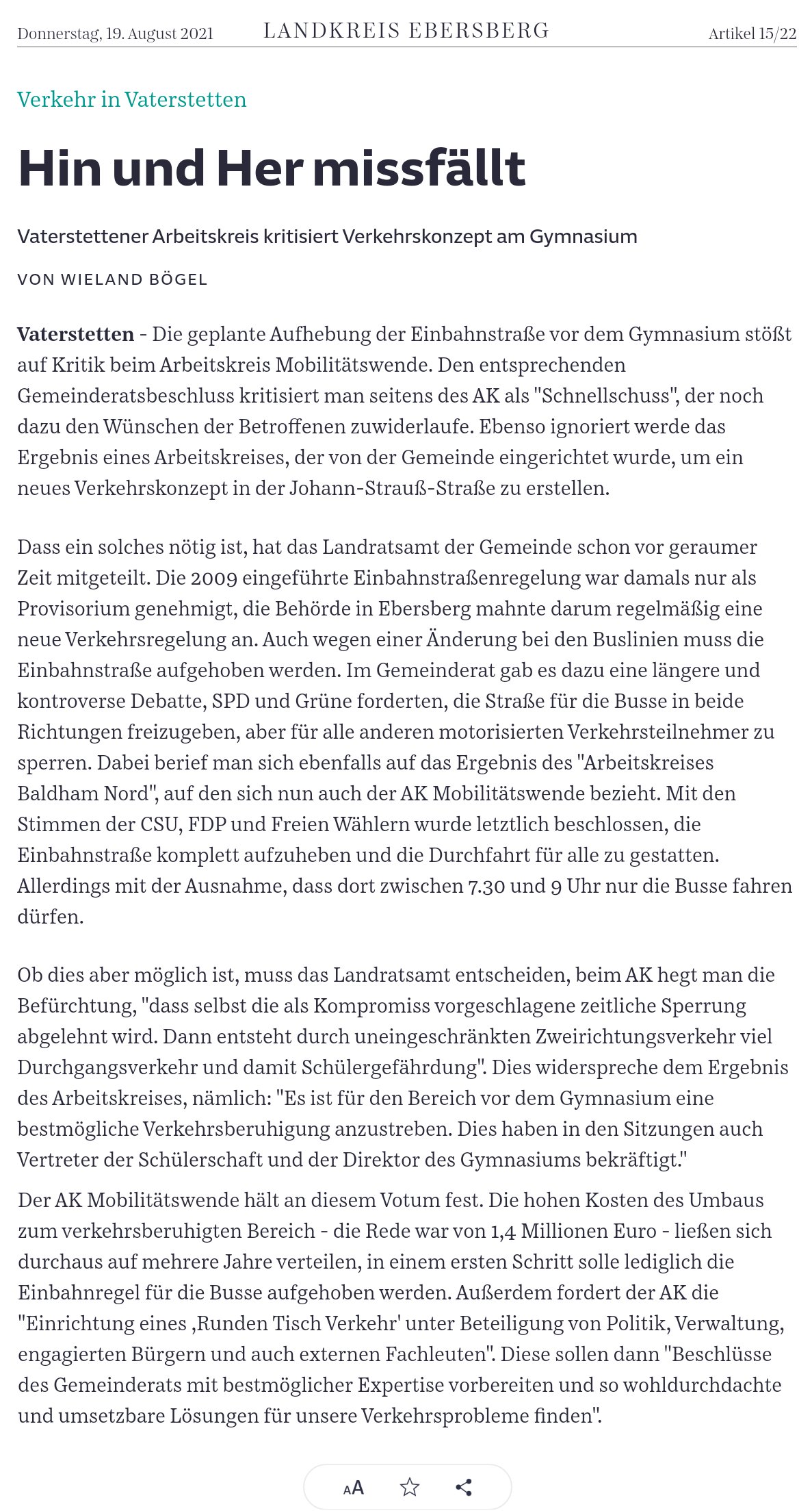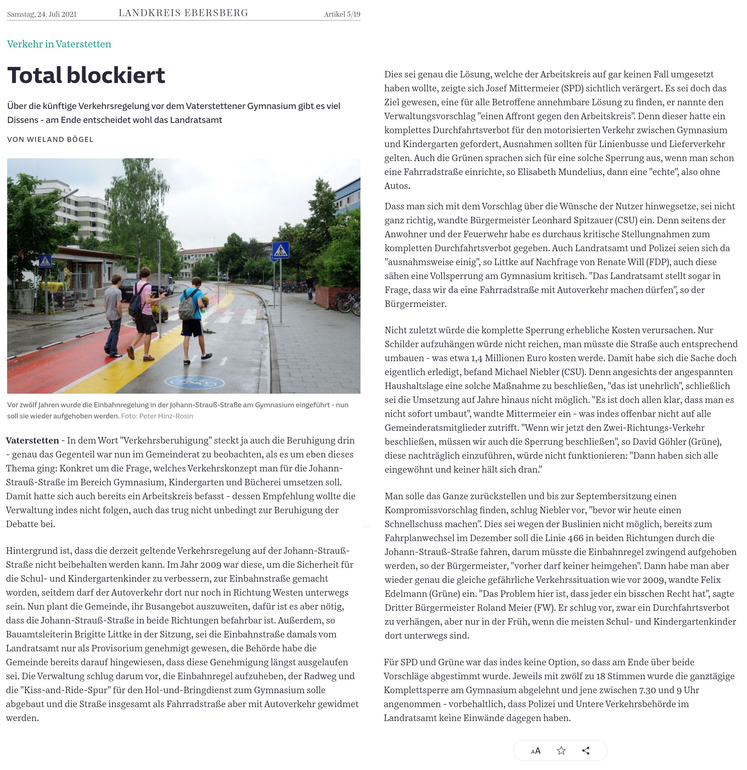 Gemeinderatssitzung vom 22.7.21 ( SZ Bericht ):