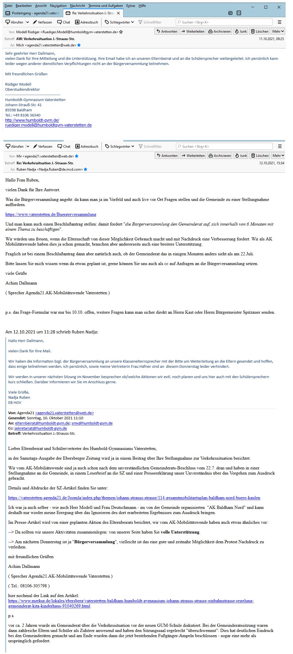 Mailverkehr Elternbeirat / HGV wg. geänderter Verkehrsführung vor Gymnasium: